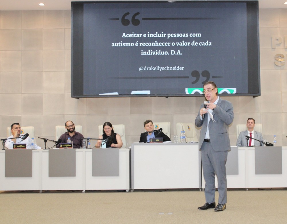 A audiência contou com o apoio do deputado estadual Neno Razuk e teve como palestrantes o especialista em Gestão de Pessoas Emerson Faria, a médica, pós-graduada em Psiquiatria e atendimento em Saúde Mental, Kelly Santos Schneider Nunes, e o pedagogo, pós-graduado em Educação Especial, TEA, Psicopedagogia e Neuropsicopedagogia, Diogo de Freitas Marques. A mesa de autoridades ainda contou com a presença do vereador Daverson Matos.