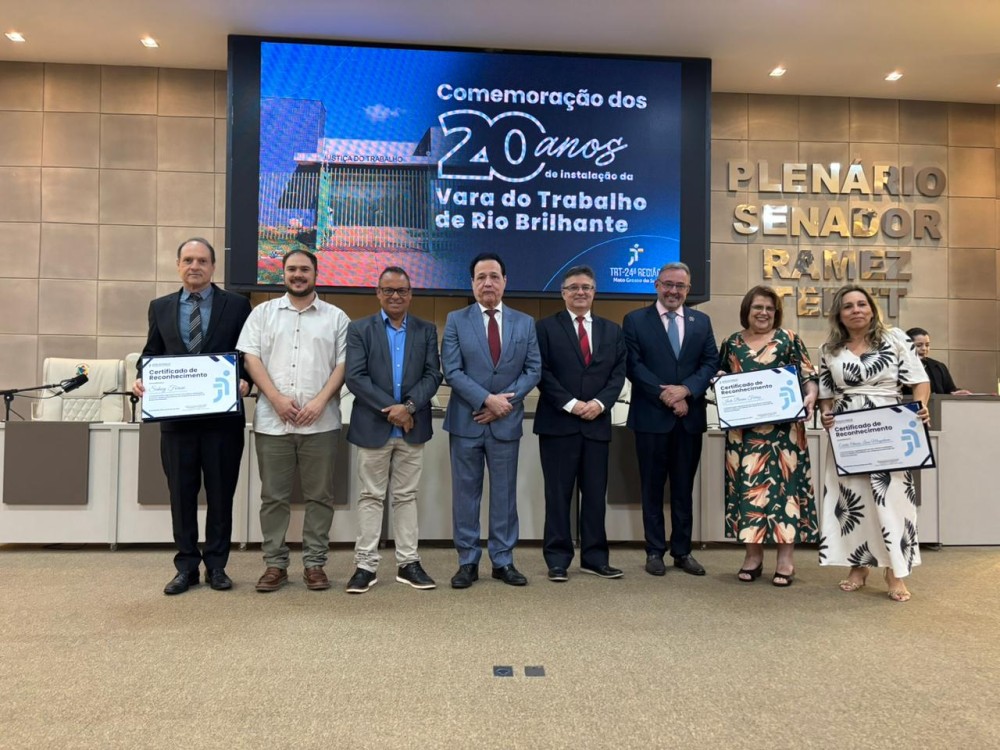 Para o presidente, celebrar os 20 anos da Vara do Trabalho é reafirmar o compromisso com uma cidade que cresce com responsabilidade, cidadania e respeito às leis. “Rio Brilhante só tem a ganhar quando fortalecemos instituições como esta. A Justiça do Trabalho é fundamental para manter o equilíbrio e o diálogo nas relações laborais, e nós, como Poder Legislativo, seguimos à disposição para apoiar iniciativas que garantam mais desenvolvimento e justiça para nossa população”, finalizou.