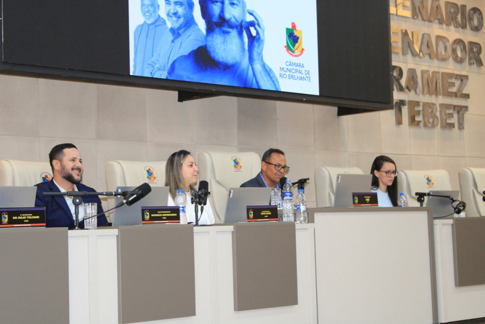 A pauta esteve cheia e o foco foi no futuro de Rio Brilhante. Um projeto de lei do Poder Executivo mereceu destaque, pois já era aguardado pelos parlamentares para apreciação e se trata de um tema de grande interesse da população rio-brilhantense: habitação. O projeto, analisado pelas comissões pertinentes e colocado em votação em caráter de urgência, dispõe sobre a autorização para realização de sorteio, celebração de contratos de promessa de doação de 125 lotes urbanos. Outros três Projetos de Lei Ordinária entraram em 1ª votação: de autoria do vereador Rodrigo Laboissier (MDB), PL que declara de utilidade pública municipal a ACAMARE, associação de catadores de material reciclável do município; apresentado pelo vereador Paulo César (MDB), PL que concede utilidade pública à Associação Real Oviedo, dedicada à formação de atletas; PL da Mesa Diretora, que institui a Cota para o Exercício da Atividade Parlamentar (CEAP).